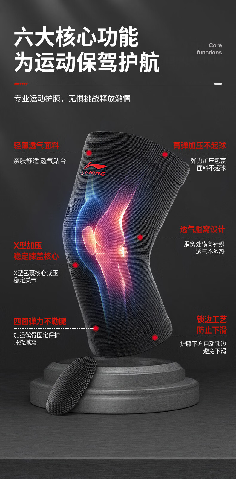 李寧護膝運動保暖男女士老寒腿跑步半月板損傷關節炎專用登山籃羽毛球