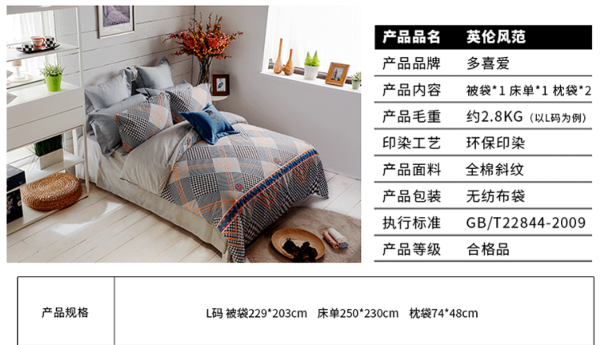 多喜愛(ài)英倫風(fēng)范(芬納諾純棉抗菌四件套)