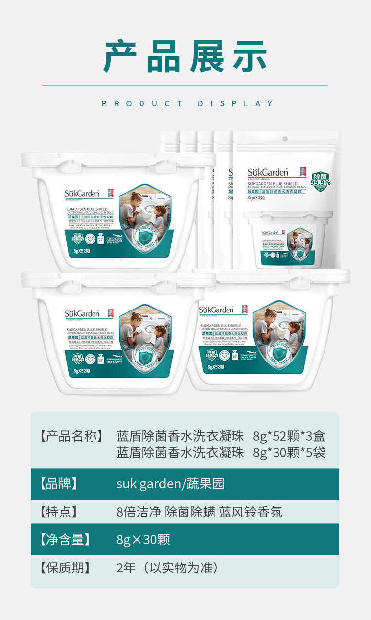 蔬果園藍盾香水除菌洗衣凝珠-8g*52顆*3盒+蔬果園藍盾香水除菌洗衣凝珠-8g*30顆(袋裝)*5袋(306顆)