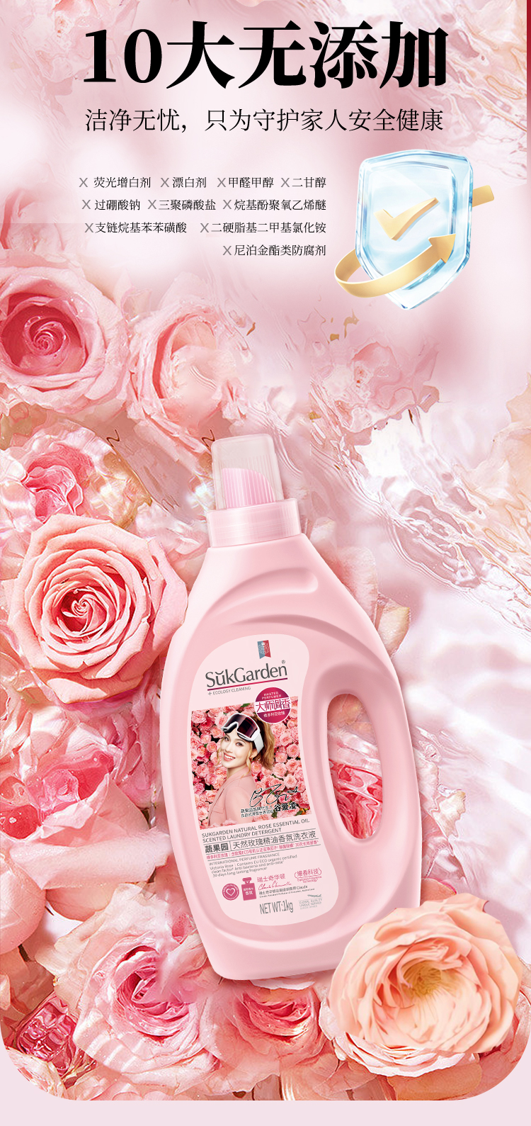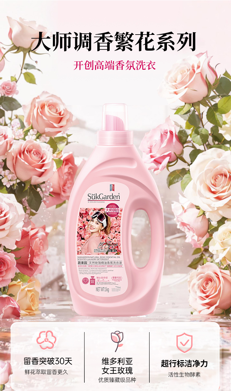 蔬果園維多利亞玫瑰精油洗衣液1kg*6+100g*6瓶