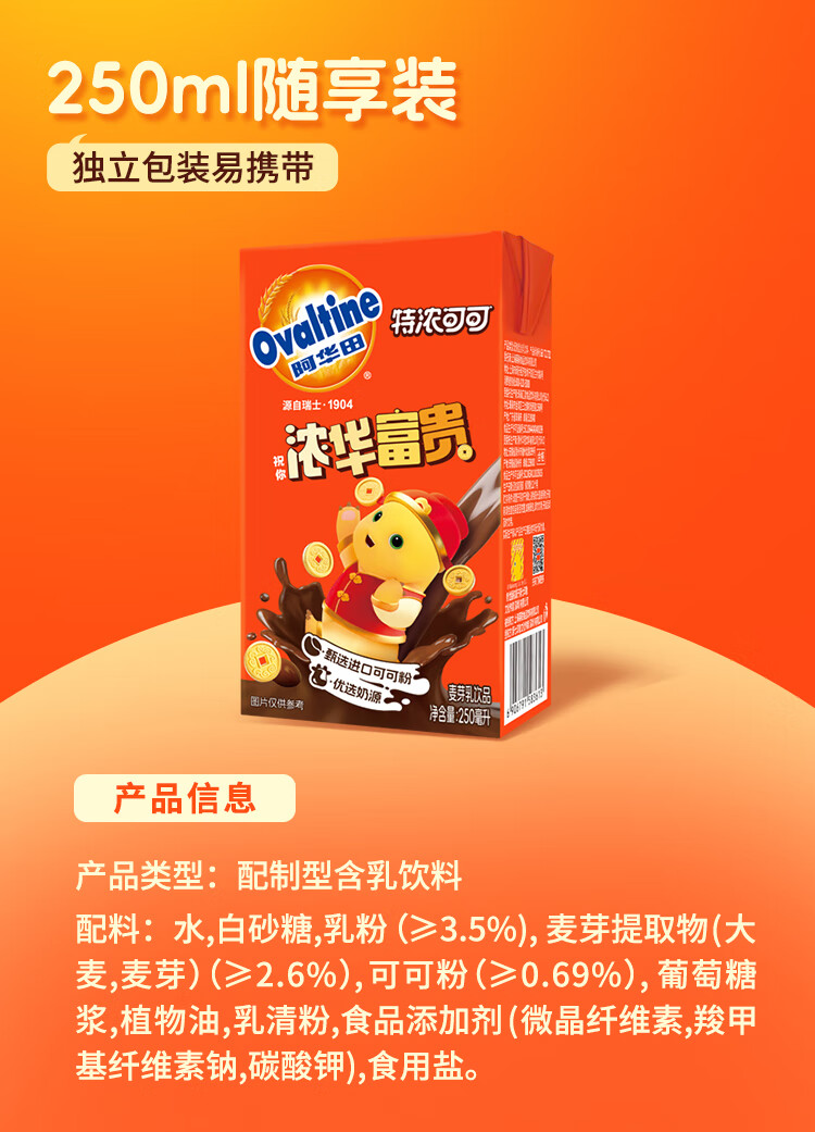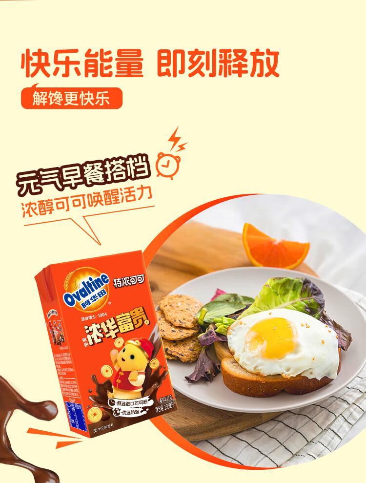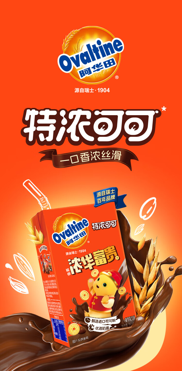 阿華田(Ovaltine)特濃可可麥芽乳飲料巧克力燕麥早餐奶250ml*18盒 新老款隨機發貨