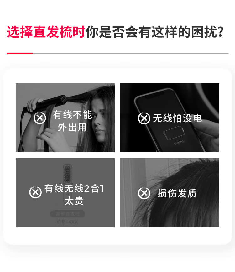 TYMO【明星同款】第4代無線直發(fā)梳有線無線二合一負(fù)離子直板夾卷發(fā)棒不傷發(fā)高顱頂撫平毛躁 禮物推薦