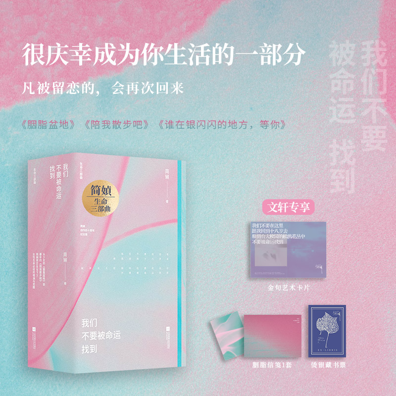 8、第一輯《女兒紅》《夢游書》《微暈的樹林》(簡媜女性三部曲)現已推出;第二輯《胭脂盆地》《陪我散步吧》《誰在銀閃閃的地方,等你》(簡媜生命三部曲)隆重上市!