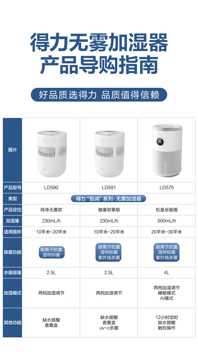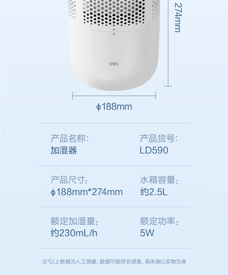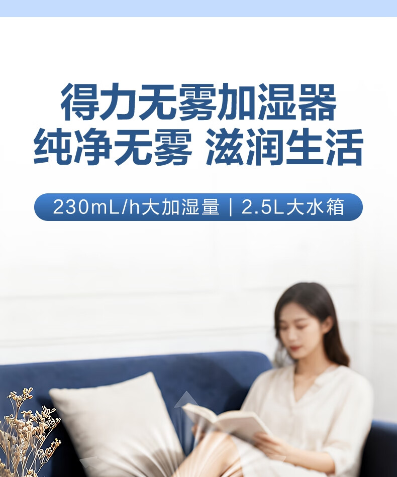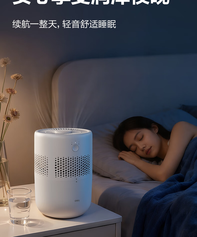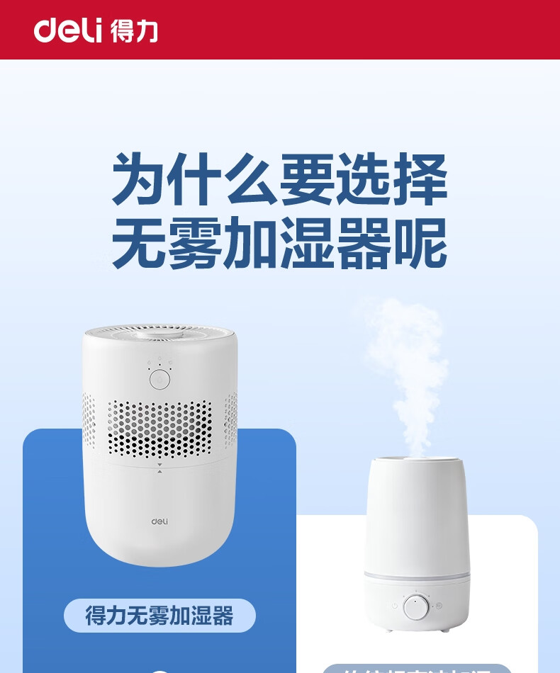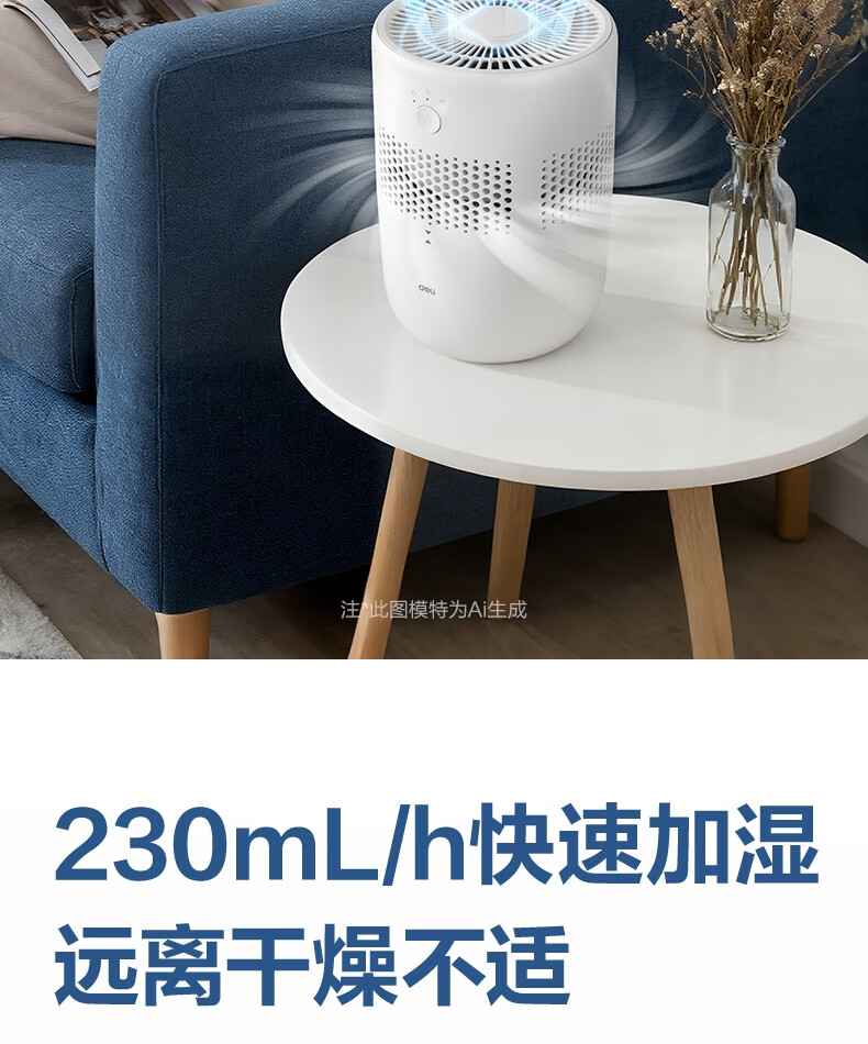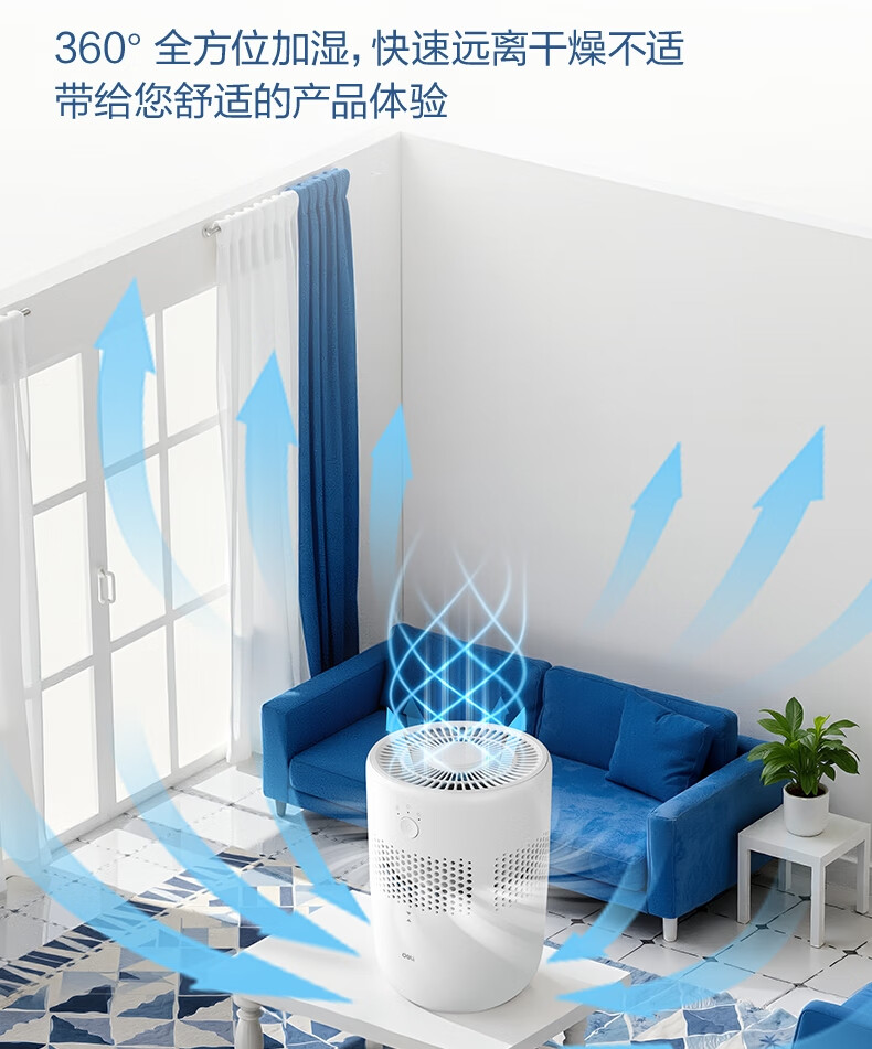 得力(deli)加濕器無霧輕音除菌桌面大容量大霧量辦公室臥室家用空氣加濕器空調風扇伴侶禮品可視水線
