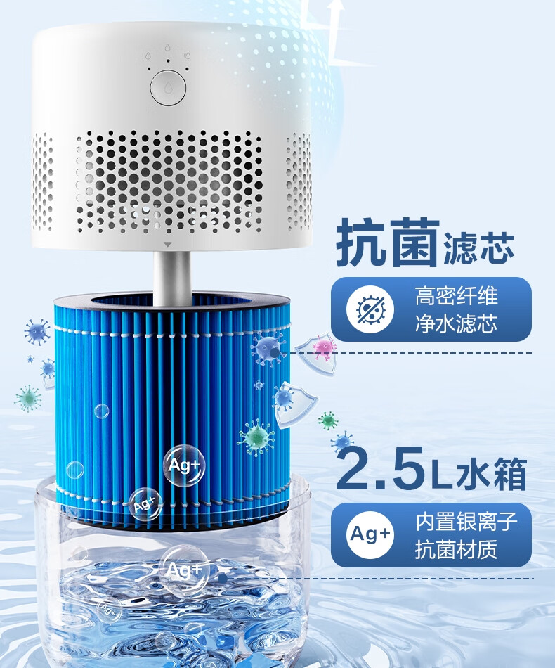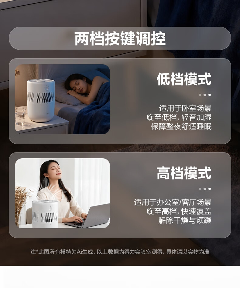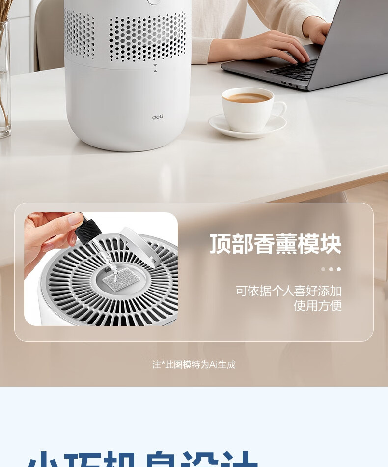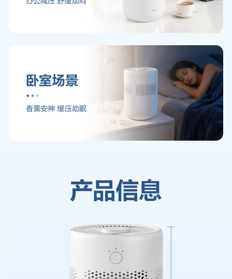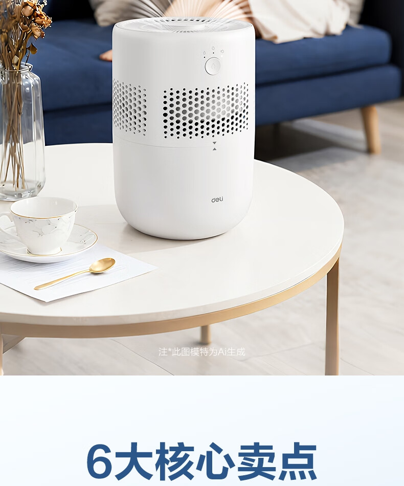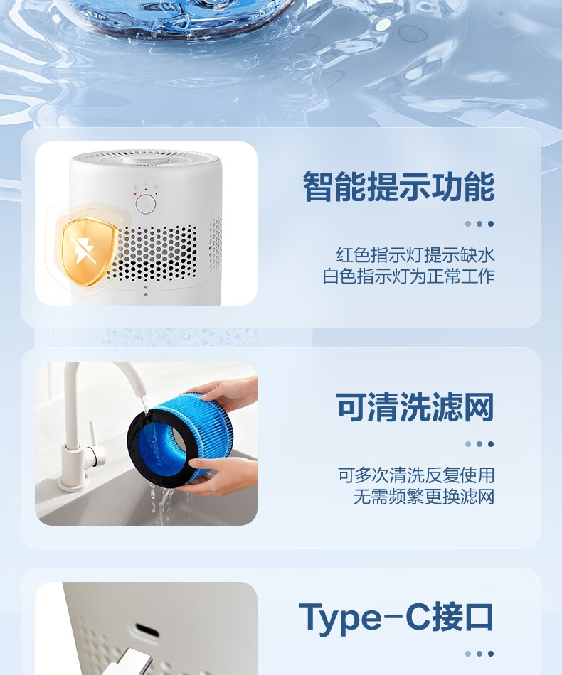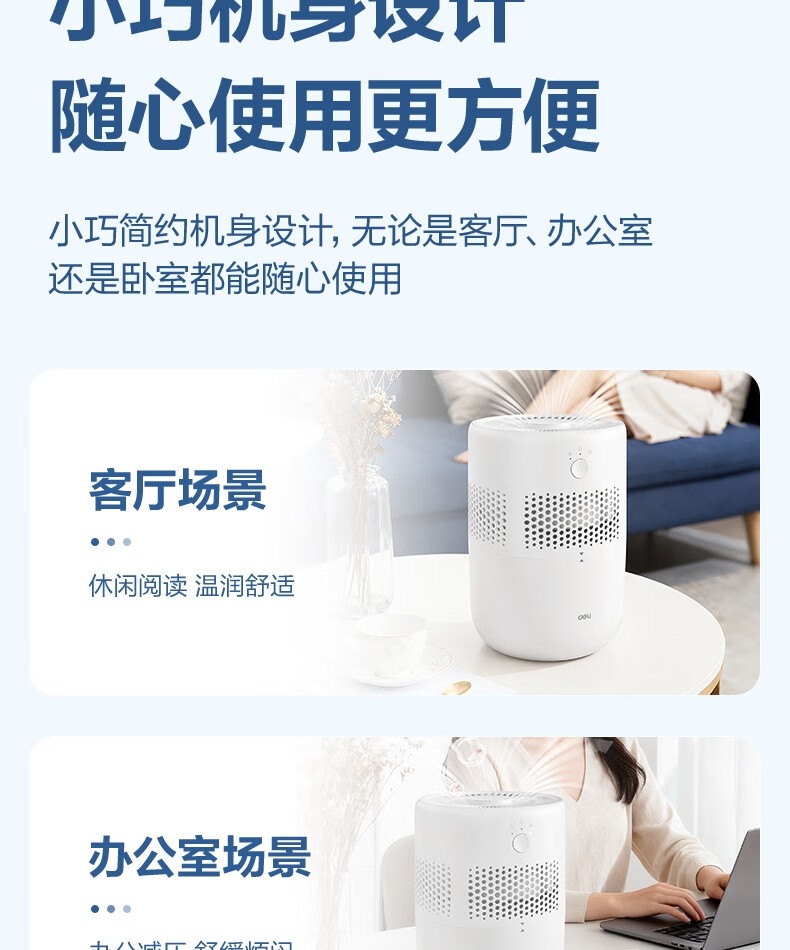 得力(deli)加濕器無霧輕音除菌桌面大容量大霧量辦公室臥室家用空氣加濕器空調風扇伴侶禮品可視水線