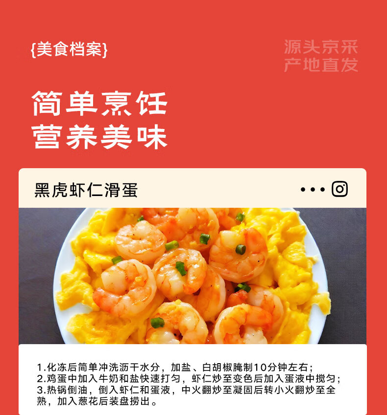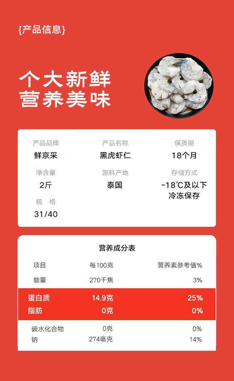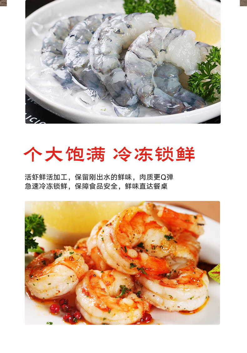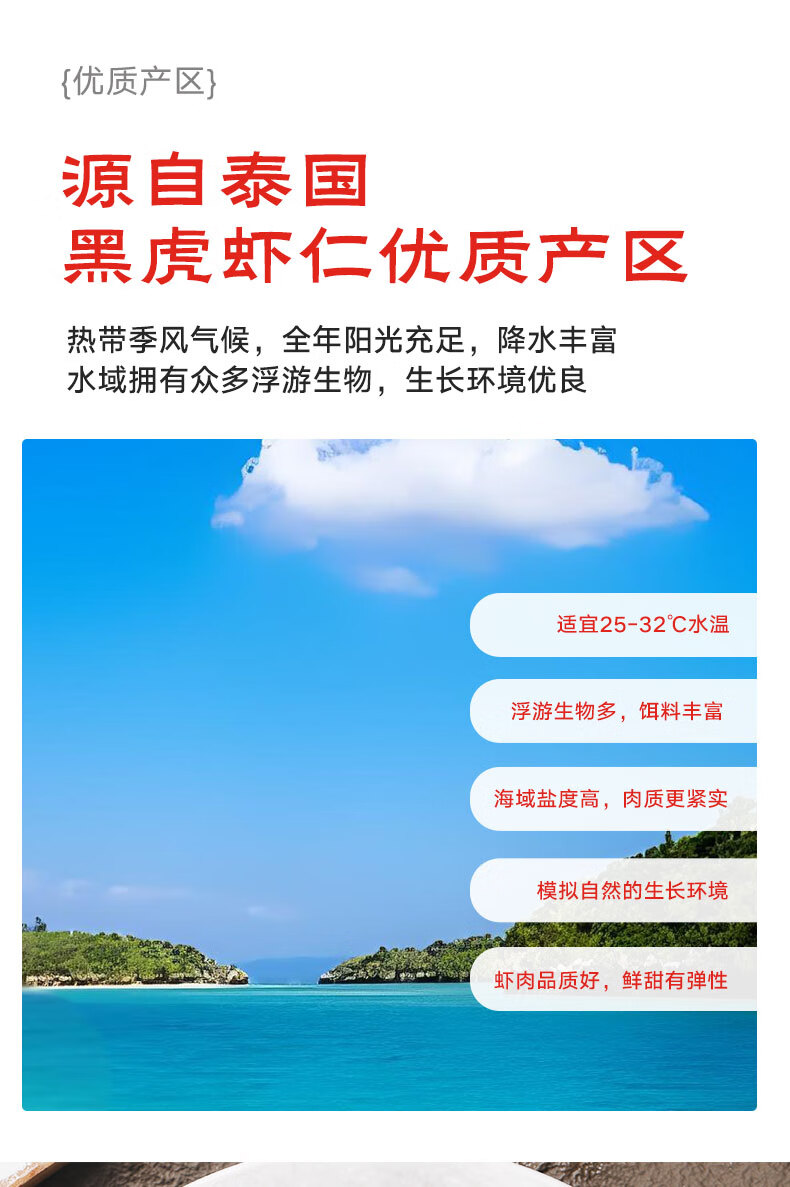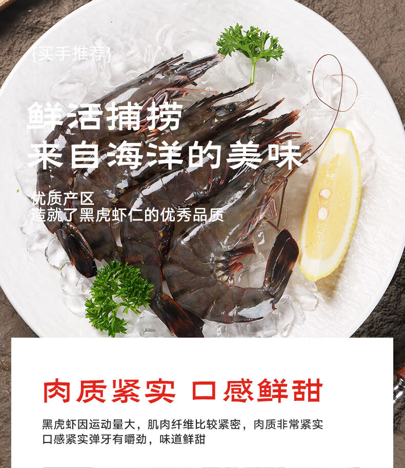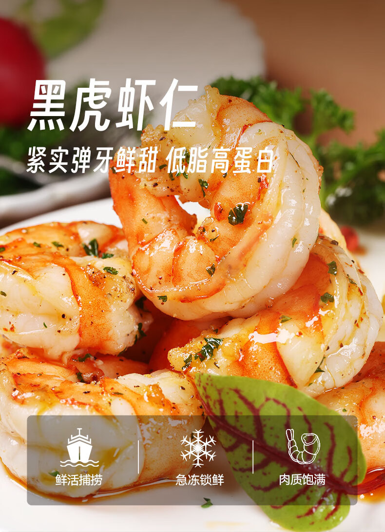 鮮京采【0保水劑】大號黑虎蝦仁1kg 無冰凈重68-88只