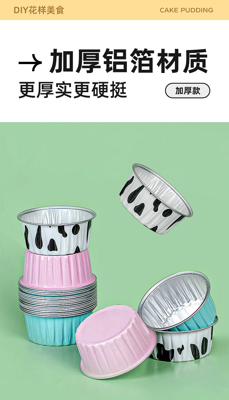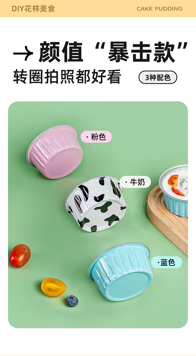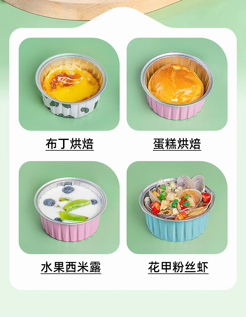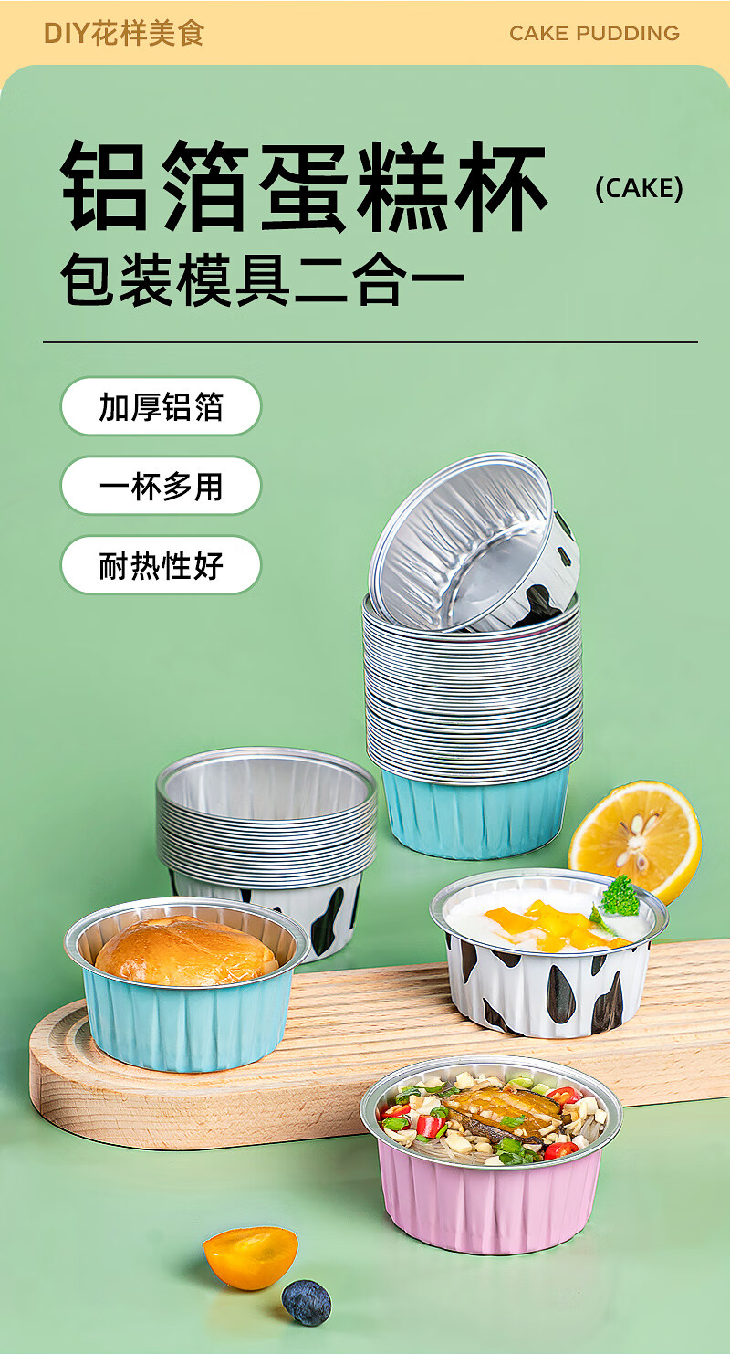 特美居(temeiju)錫紙碗30只蛋糕模具錫紙杯烘焙布丁蒸糕空氣炸鍋錫紙盤加厚