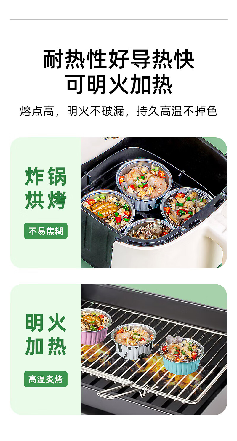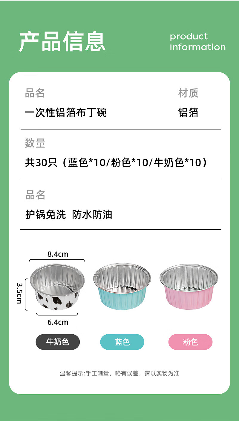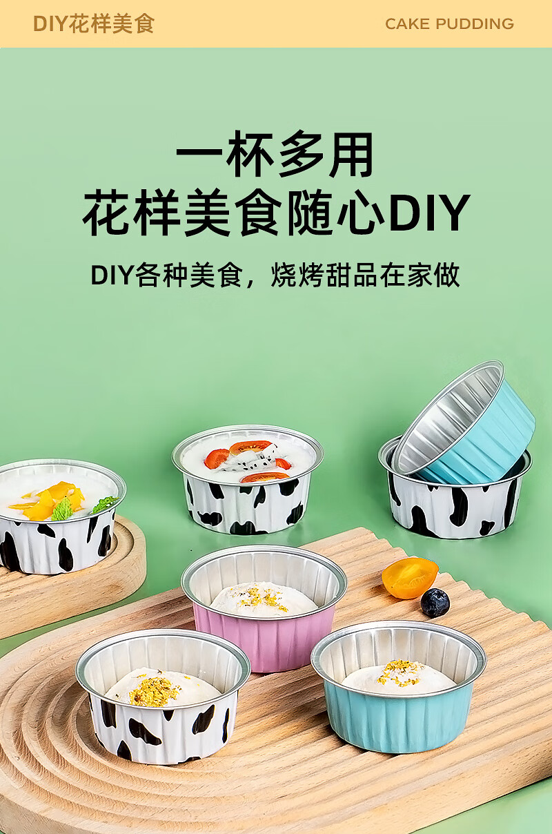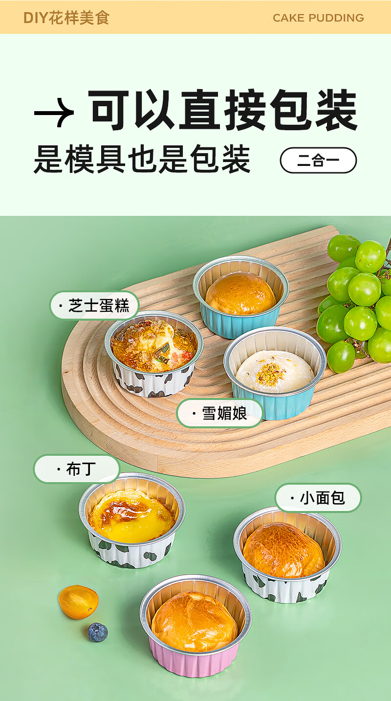 特美居(temeiju)錫紙碗30只蛋糕模具錫紙杯烘焙布丁蒸糕空氣炸鍋錫紙盤加厚