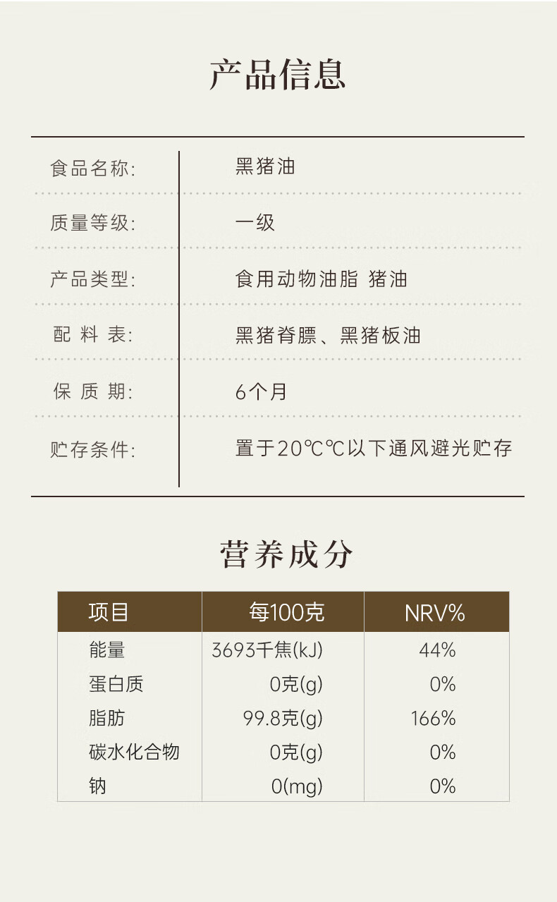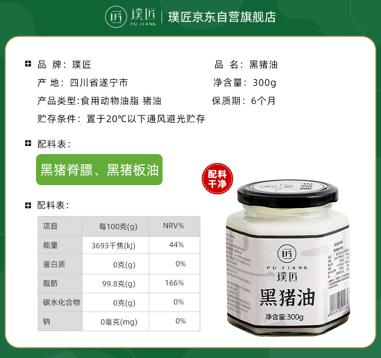 璞匠 黑豬油300g 無抗慢養(yǎng)黑豬油 熬制增香 家用食用油 炒菜拌飯面