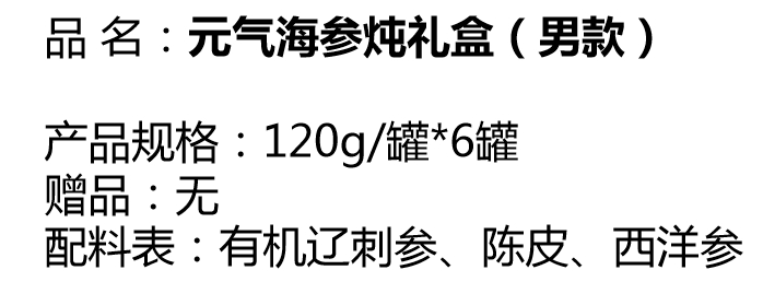 鮮燉海參禮盒男款(6罐/箱)