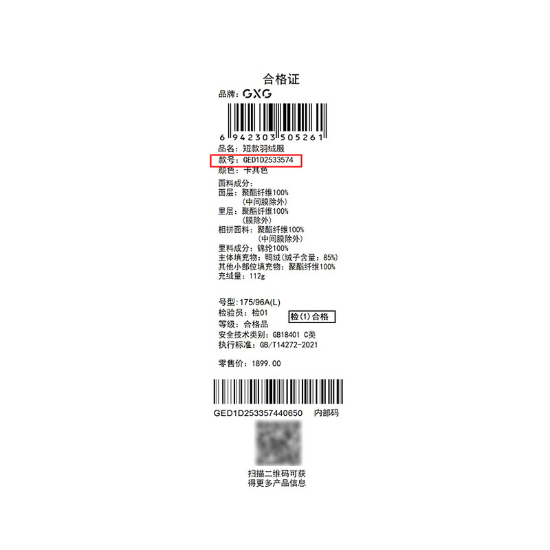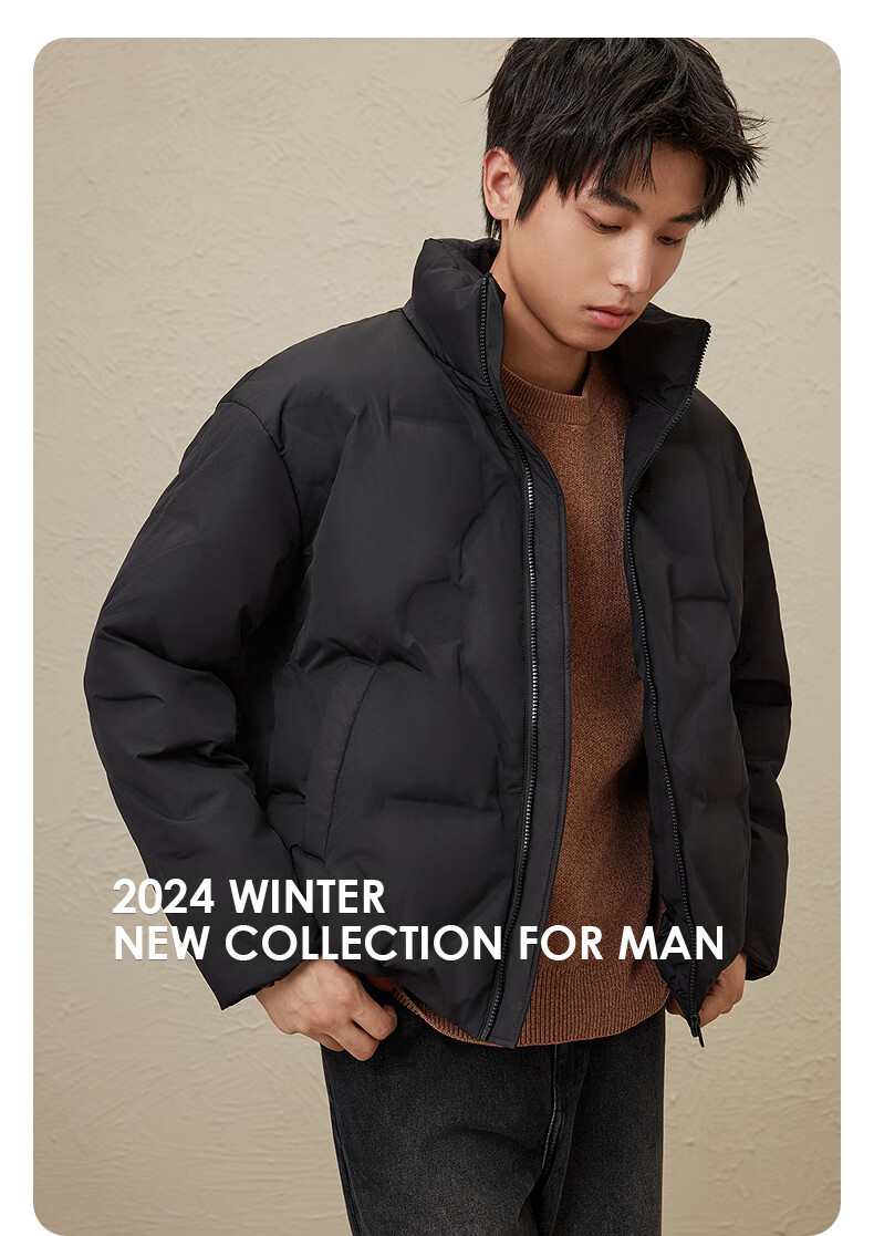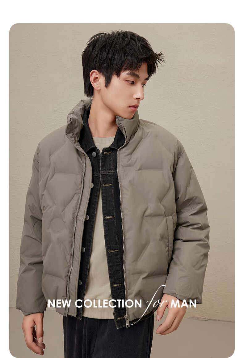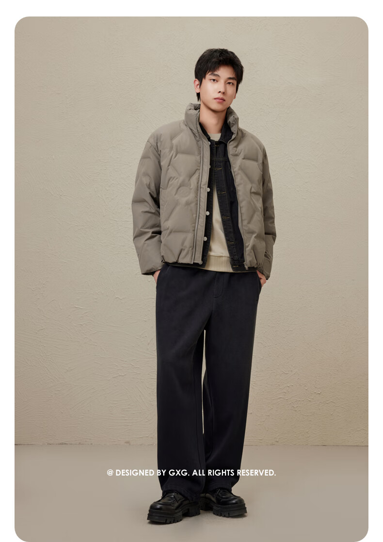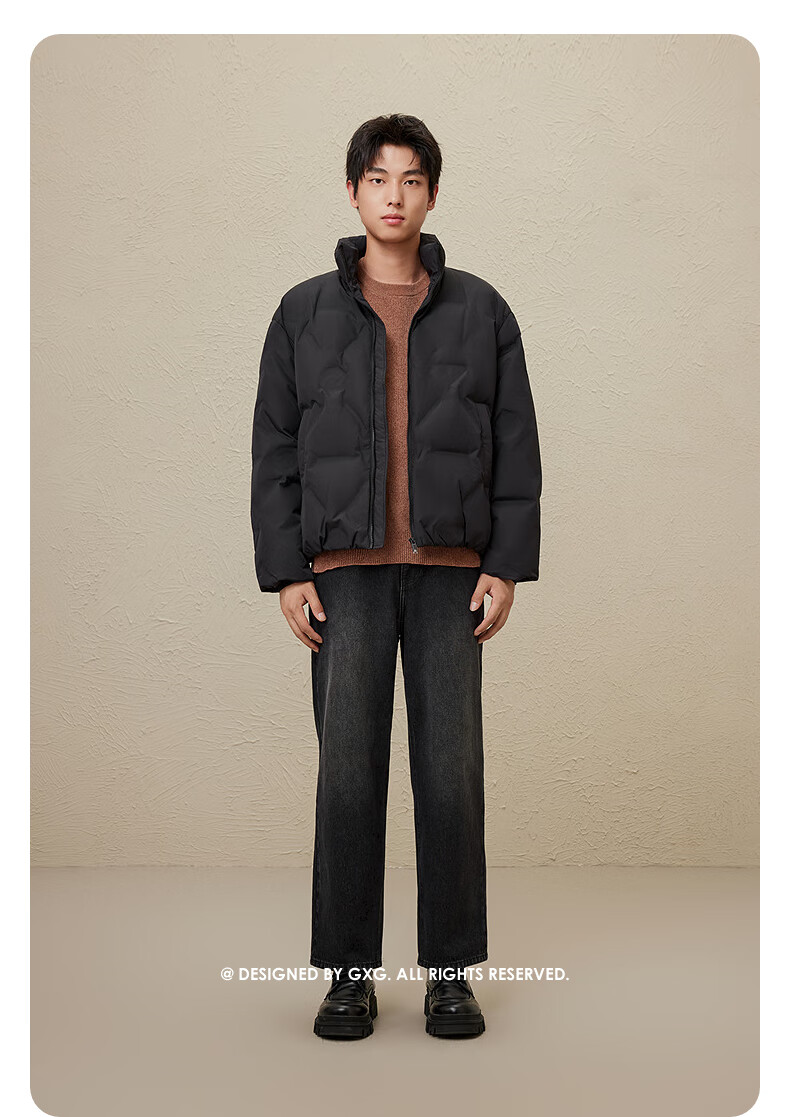 GXG男裝休閑壓印立領(lǐng)保暖短款羽絨服 黑色 3XL