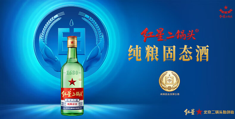 紅星二鍋頭 大二 清香型白酒 56度 500ml 單瓶裝 純糧口糧酒