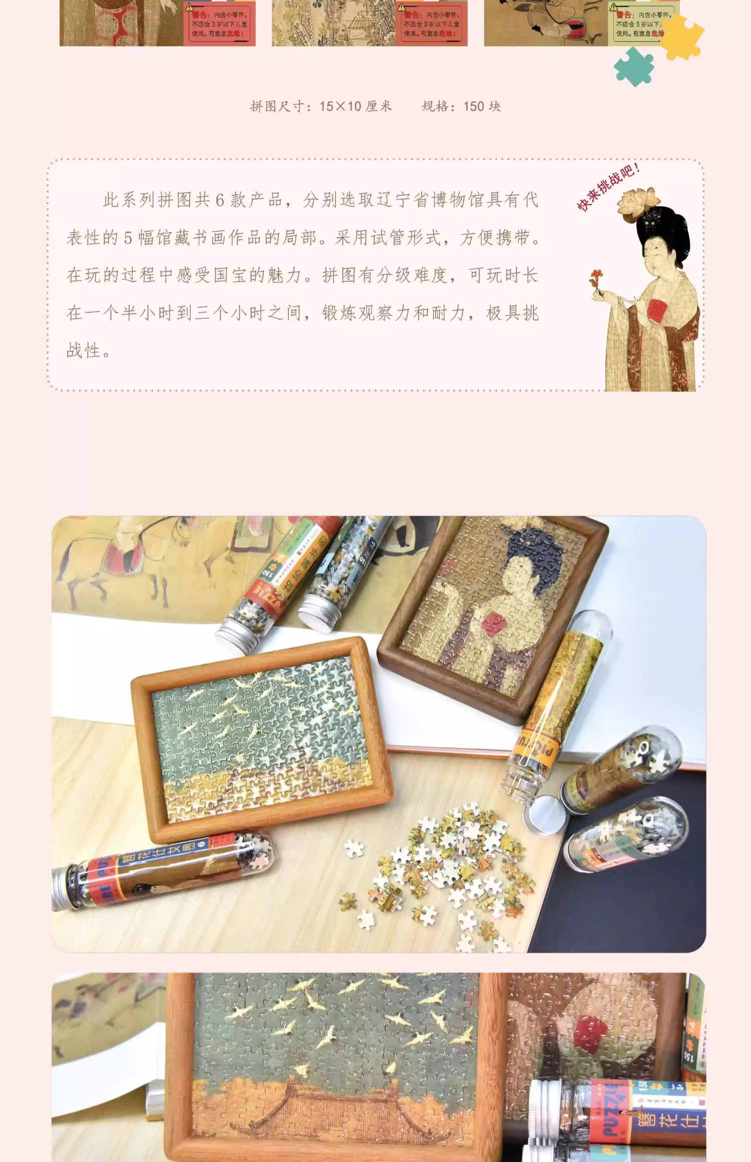 遼寧省博物館藏書畫系列試管拼圖150片便攜玩具兒童成人文創禮物