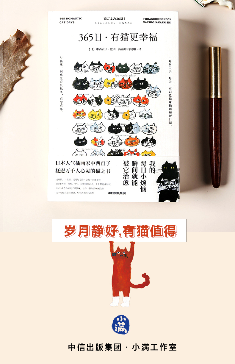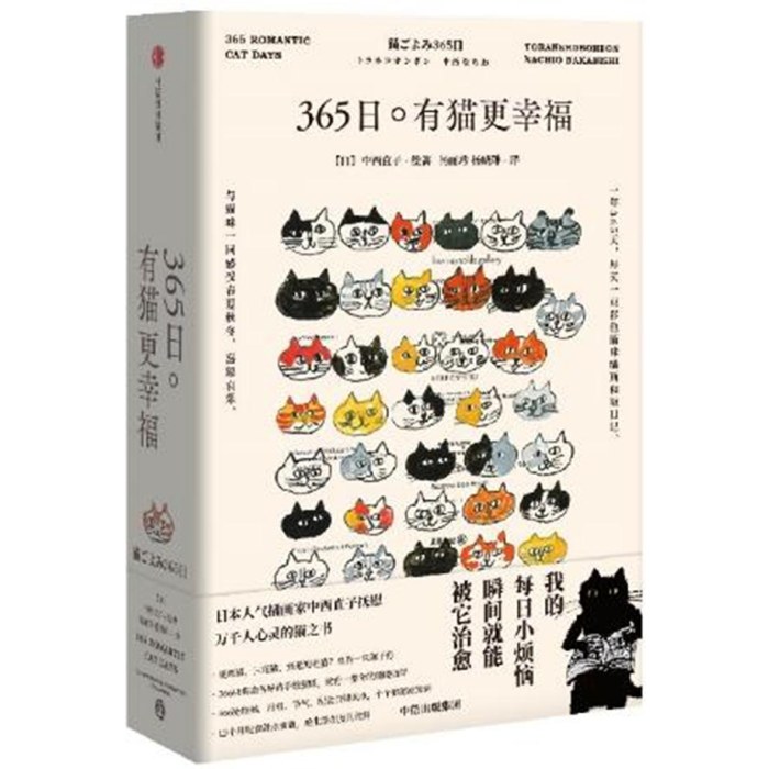中西直子 被譽為“一手拿畫筆,一手拿鍋鏟”的日本插畫家暨料理師。2007年創立“虎斑貓蹦蹦”(TORANEKOBONBON)形象及品牌。她在《365日:有貓更幸?!穬任闹羞\用了收集的廢舊書頁、樂譜、包裝盒等,混搭水彩、墨水、蠟筆等畫具,拼貼描繪出366張可愛靈動的貓咪畫作。擁有獨特世界觀的她畫風靈動活潑,讓人喜愛不已,擁有大批忠實粉絲。該書在日本和中國臺灣地區上市時均引起不小反響。