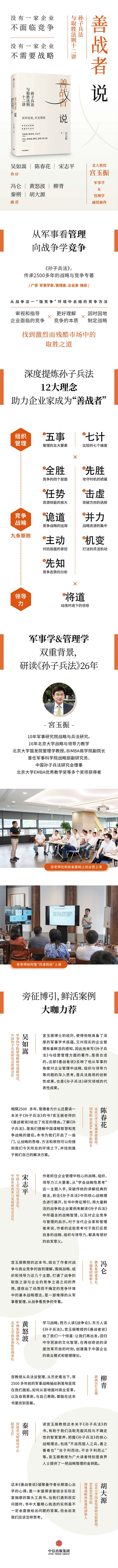 競爭是企業面臨的常態。尤其是2020年以來,形勢復雜多變,不確定性增加,競爭也隨之加劇。在這種情況下,企業如何因時因地制定發展戰略?如何在激烈而殘酷的競爭脫穎而出?中國傳統智慧如何幫助企業增長? 作為一部流傳2500多年的兵法,《孫子兵法》直到今天依然為世人所推崇,就是因為很少有人對戰爭與取勝的思考和理解,能像孫子這樣透徹與深刻。它從戰略的高度,揭示了戰爭取勝的基本要素和根本原理。換言之,《孫子兵法》是一部關于競爭理論的專著。用從戰爭這種殘酷的“強競爭”的環境中所總結出來的競爭方法,來審視企業所面臨的競爭,往往可以幫助我們更好地理解競爭的本質,以及競爭中的取勝之道。那么, 如何更好地從兵法學管理,向戰爭學競爭?是直接讀《孫子兵法》,還是通過與現代企業管理的結合,來做進一步的學習與思考呢?作為軍事學博士與北大國發院的教授,宮玉振教授20多年來研讀《孫子兵法》,并與管理學相互驗證。他從“學會戰略性思考”這一主題入手,打破《孫子兵法》的篇章結構,從中提煉出孫子很核心的12個理念,分別從組織管理的深層基礎(“五事”“七計”)、競爭戰略的九條原則(“全勝”“先勝”“任勢” “擊虛”“詭道”“并力”“主動”“機變”“先知”),以及領導力的基本內涵(將道)入手,旁征博引,用大量鮮活的案例,完備而系統地闡述了《孫子兵法》之于管理和經營的啟發與應用,協助管理者也成為一個“善戰者”。